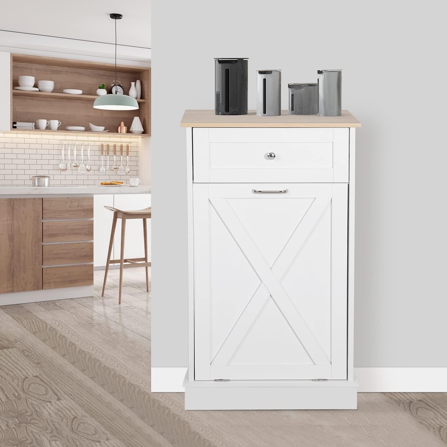 Puluomise Tilt Out Trash CabineWooden Recycling Trash Cabinet