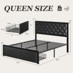 【Plenty of Storage Space】A Storage shelf on the headboard keeps your belongings within reach. 2 spacious drawers under the queen bed frame are perfect for organizing bedding or off-season. The smooth-rolling wheels make the drawers easy to slide in and out. 12.6” under bed storage space give you extra room to store suitcases or other essentials
