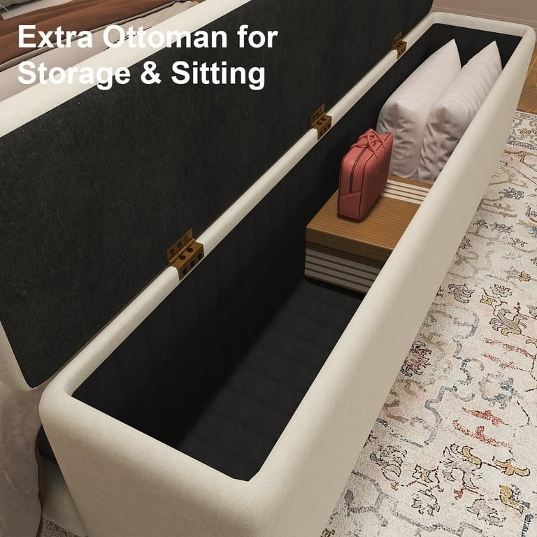 Queen Bed Frame with Storage Ottoman