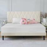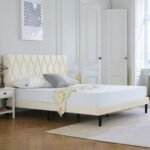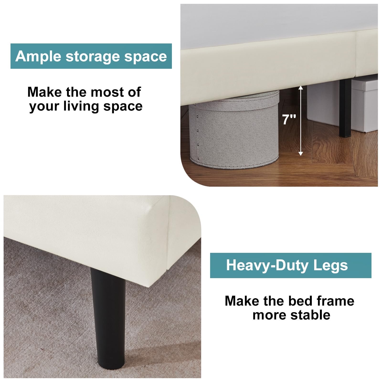 【High-quality material, durable】The upholstered part is wrapped with high-quality eco-friendly linen fabric, the foam padding also adds comfort to the bed frame, and the durable wooden strips extend the life of your mattress.