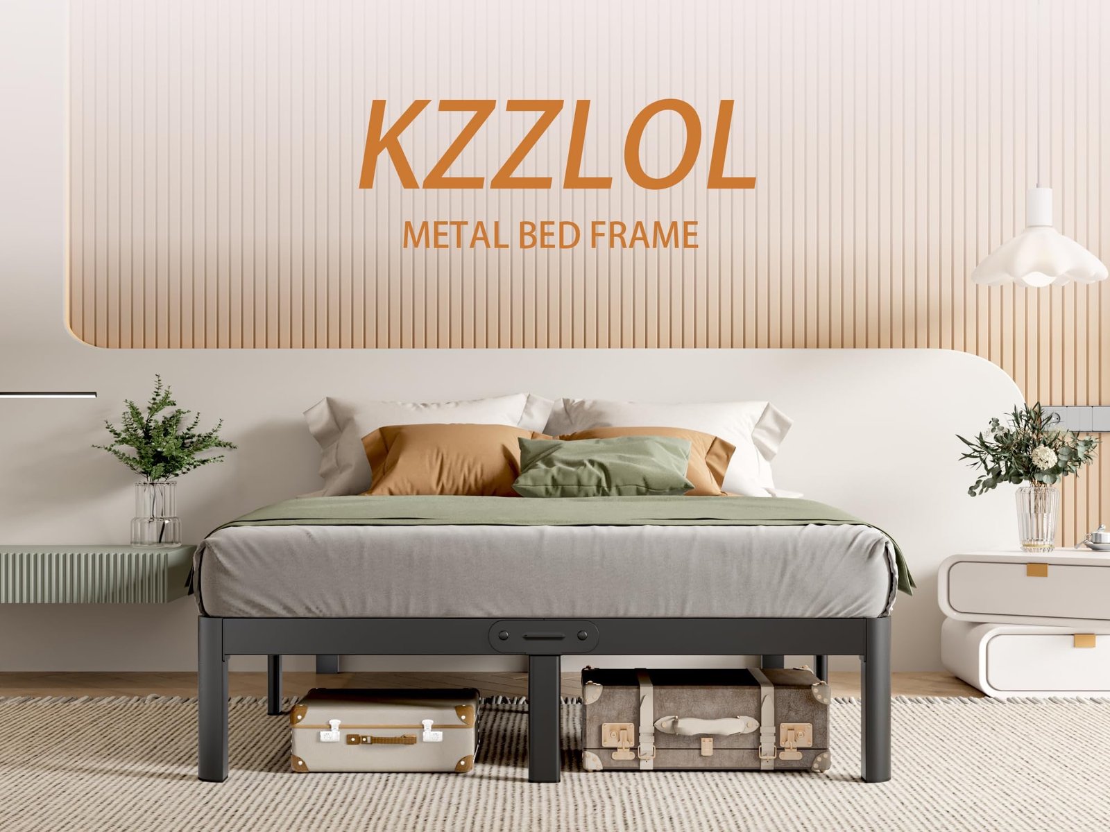 【High Load-bearing & Minimalist】 KZZLOL black metal bed frame queen size is made of heavy duty reinforced metal rods to make it more stable and strong enough to hold up to 3,500 pounds. The base de lit queen practices minimalism with a simple and stylish design, and the smooth black finish gives it a better texture. No wobbling, no squeaky noise, so you can enjoy every sleep with confidence and comfort!
