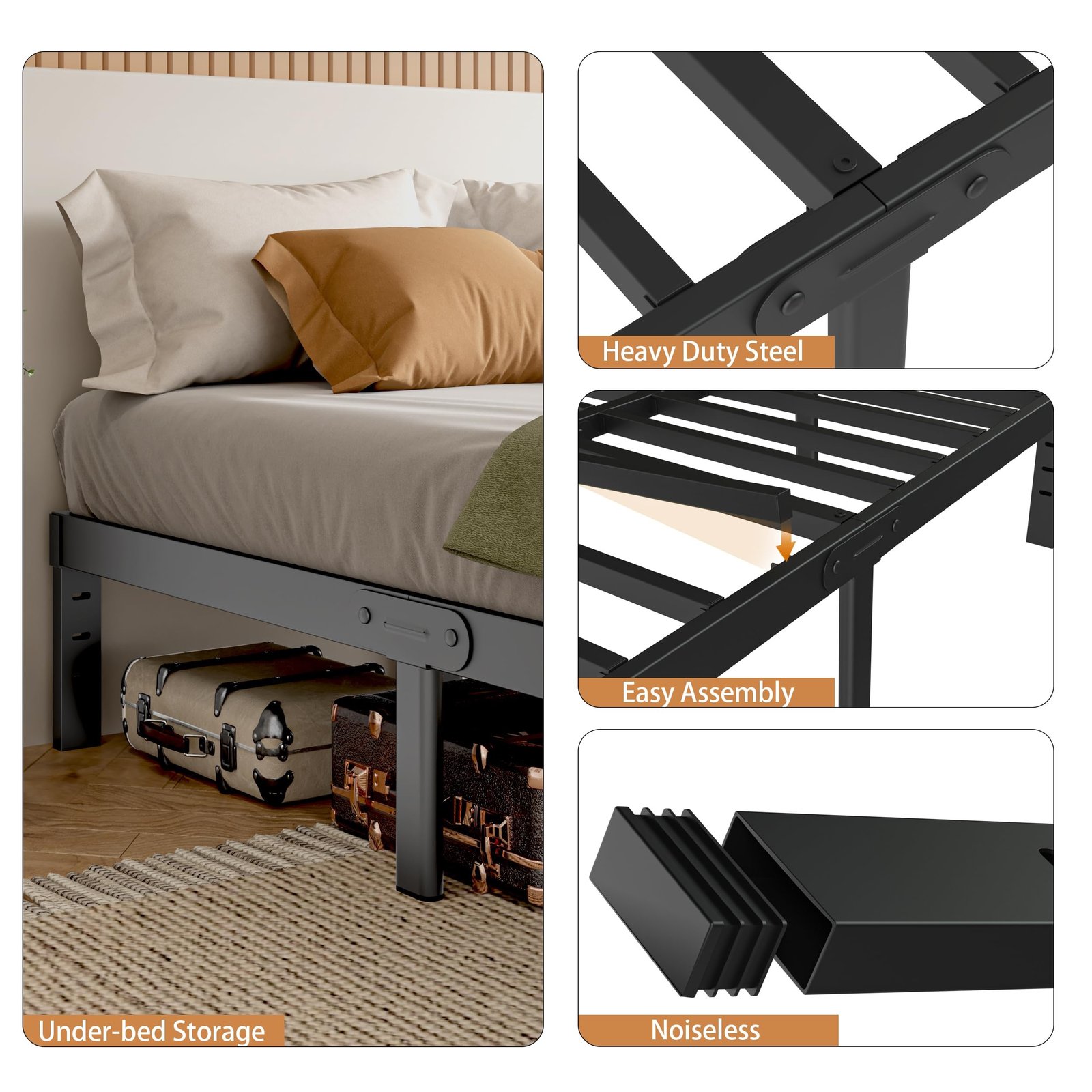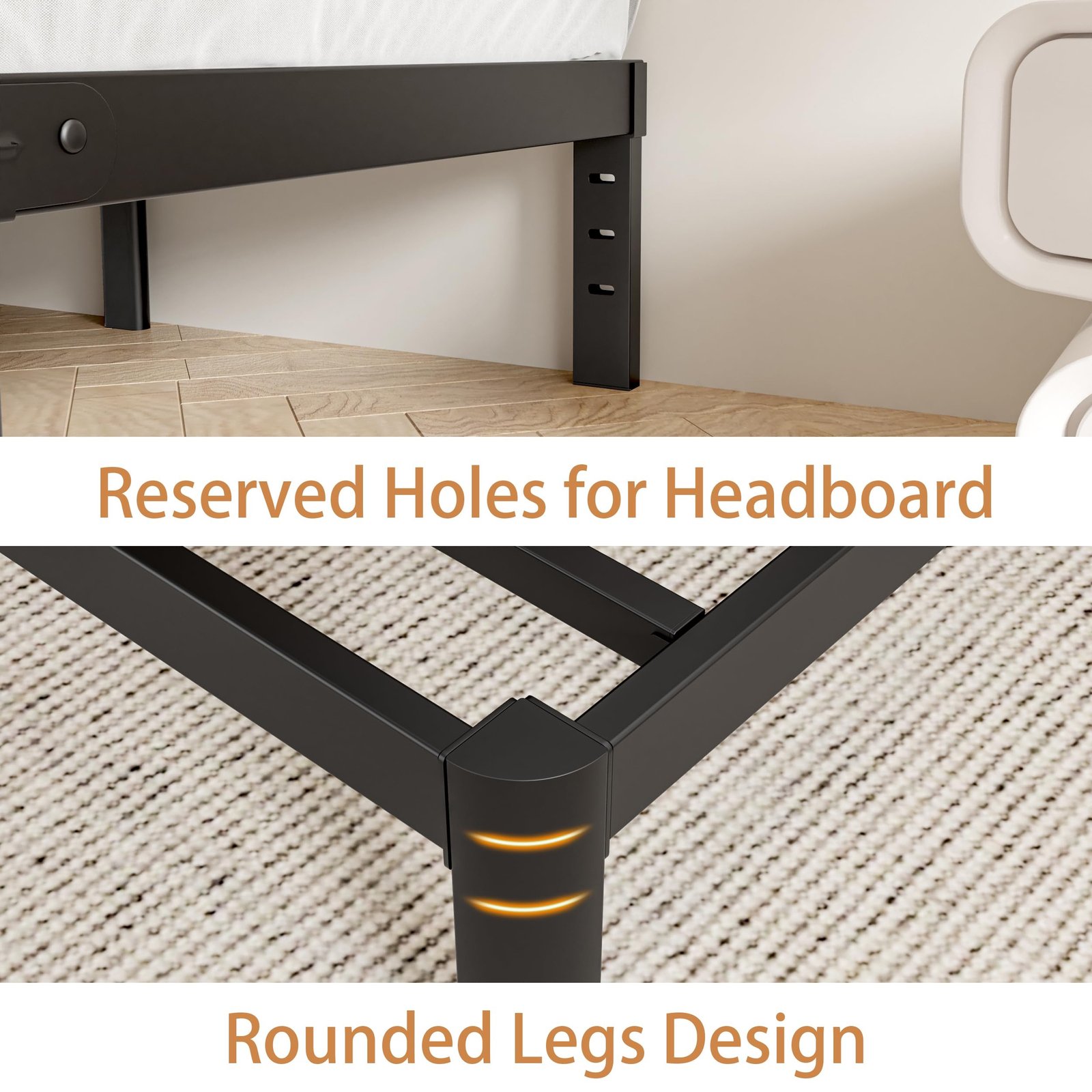【DIY Headboards & Anti-scratch Floor】 The black bed frame queen has 3 pre-drilled holes at the end of the bed legs, so you can DIY different headboards according to your needs. The metal legs of the metal bed frame queen are additionally fitted with plastic base pads at the bottom, which are non-slip and effective in preventing scratches on the floor and sharp noises due to movement. Note: The queen bed does not include the headboard.
