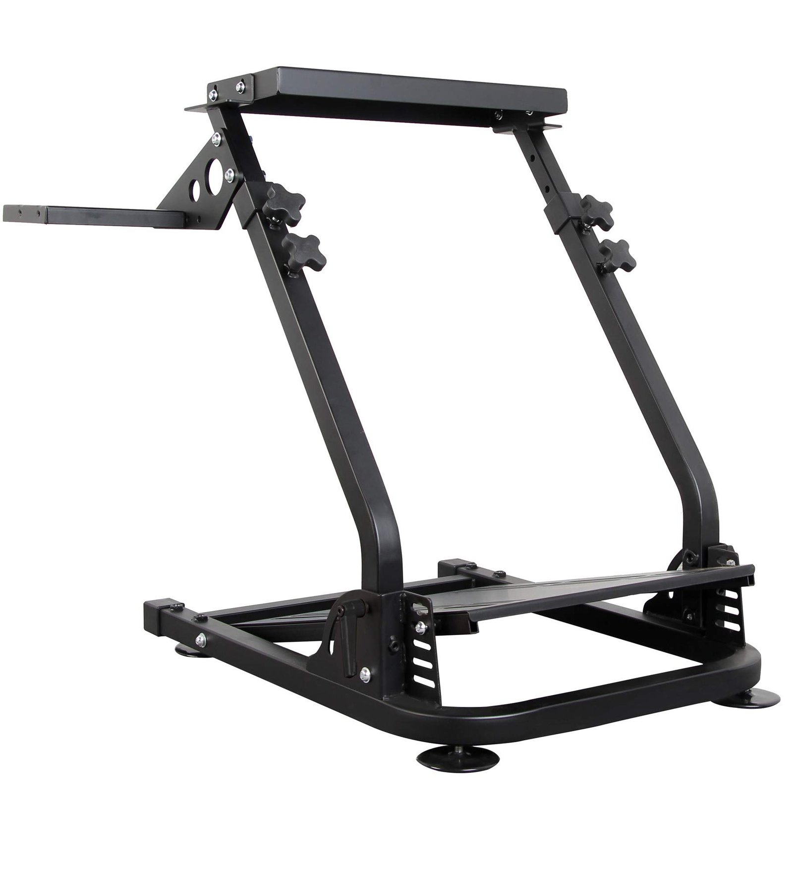 Constructed from steel box tubing, this wheel stand is very solid and will last many years of hard use. The rubber feet combined with the steel tubes make for a smooth driving experience