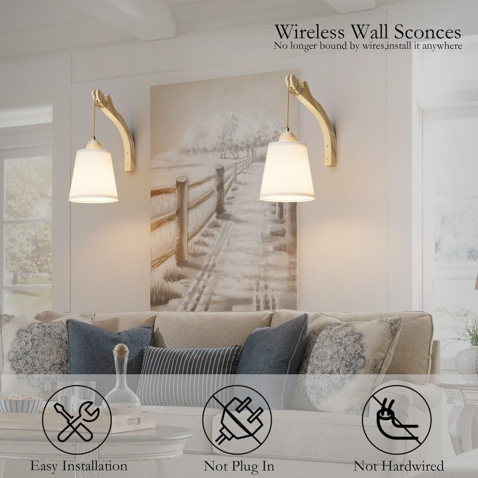 ✔️【Wireless and Easy Installation】: The battery powered wall sconces require no wiring and electrician.The package includes all mounting hardware for quick and easy installation.