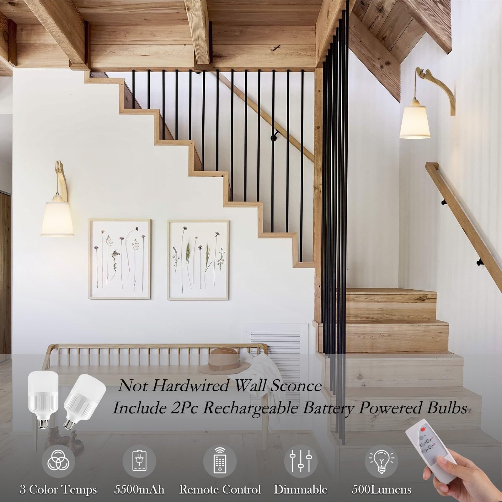 ✔️【Battery Operated Wall Sconce】: The boho battery wall sconces set of 2 include 500LM,7W,5500mAh, E26 Rechargeable battery Operated Light Bulb,can light up to 18 hours on a full charge.