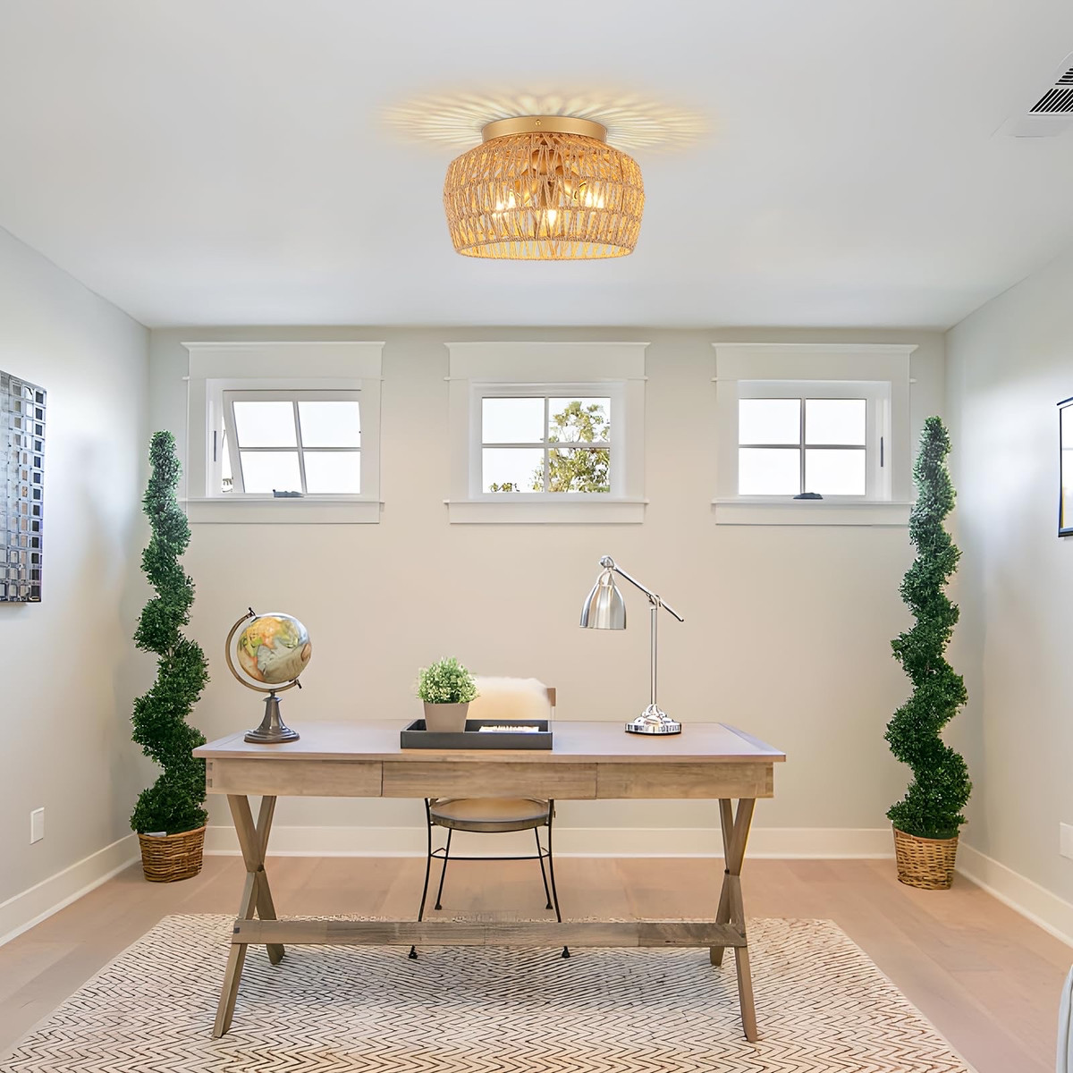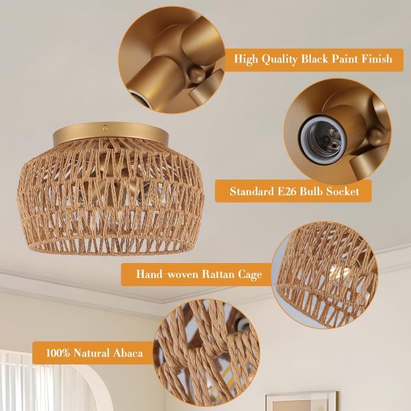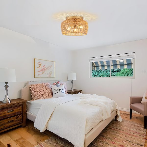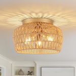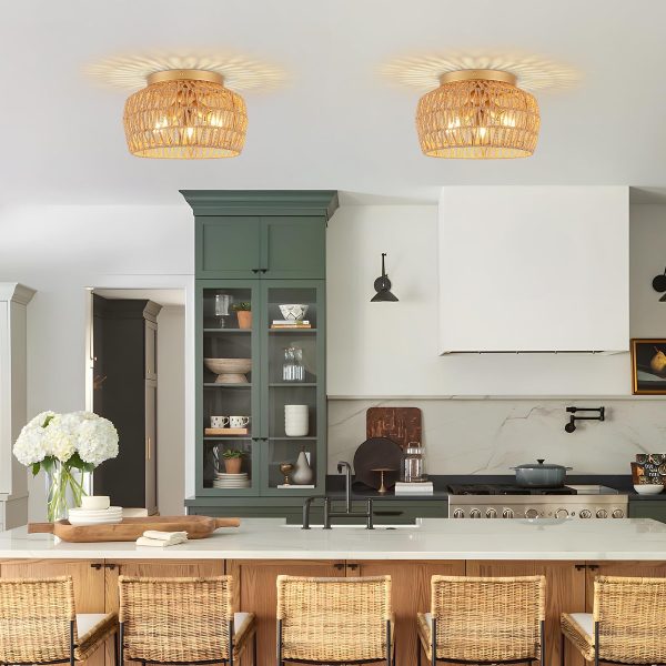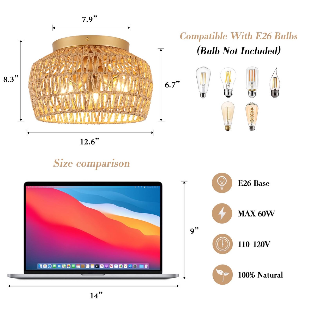 ?Woven Rattan Flush Mount Ceiling Light Fixture?: Hand Woven flush mount ceiling light is crafted from hand woven natural rattan, beautiful hollow lampshade design, get bringing plenty of 360? light, simple environmental friendly, safety and healthy design perfect for rustic, retro, farmhouse, classic, boho, home style.