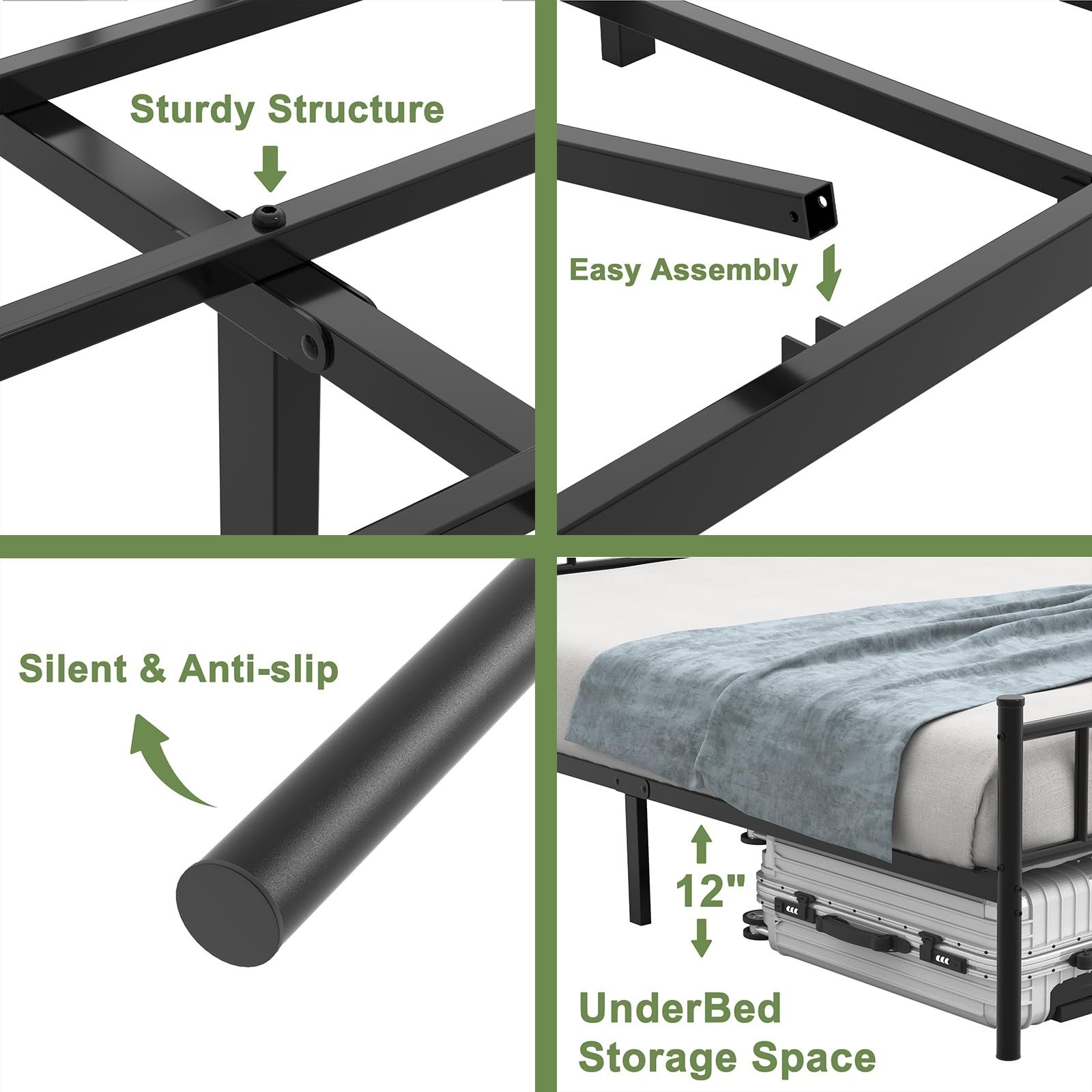 Stylish And Beautiful: The metal bed frame is designed with stylish and minimalist iron frame, and its original words of understated designed is simple and beautiful, which enhances the space aesthetics for your bedroom