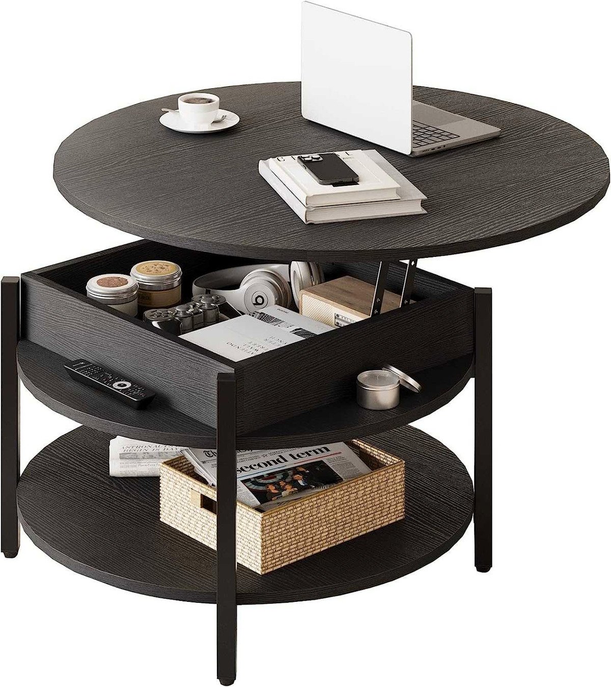 then this round lift top coffee table might be your good solution to fully utilize your space.