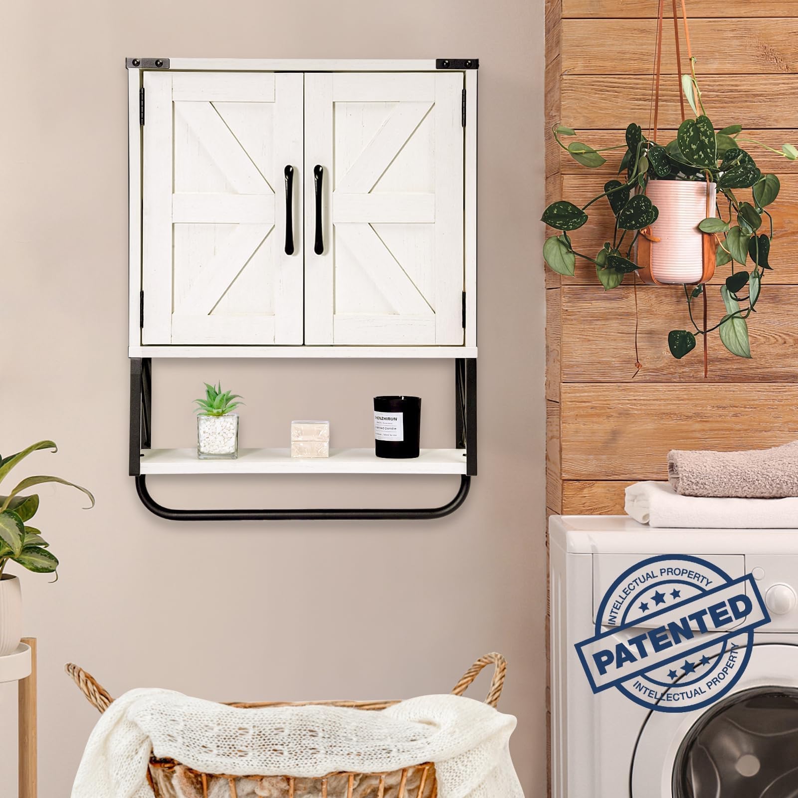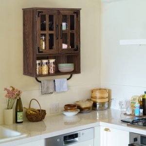 【VINTAGE FARMHOUSE DESIGN】 – The wall-mounted cabinet is made of wooden frame and vintage wood grain surface, combined with some rustic metal parts. Available in 3 colors for your choice, the vintage wood grain is full of rustic country atmosphere and fits perfectly with the style of the room.