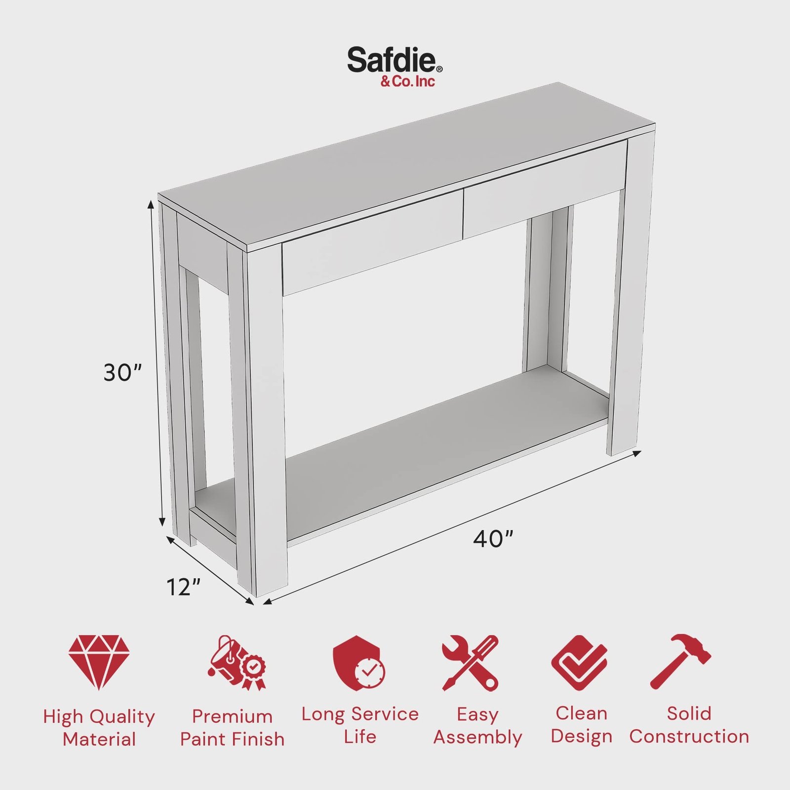 Holds Your Knickknacks – Safdie & Co.’s entry tables measure 12 (W) x 30 (H) inches. They have a spacious top, bottom shelf, and a sturdy structure to hold your trinkets. Use this vanity desk without mirror as a landing place for your keys, coins, purse, and more.