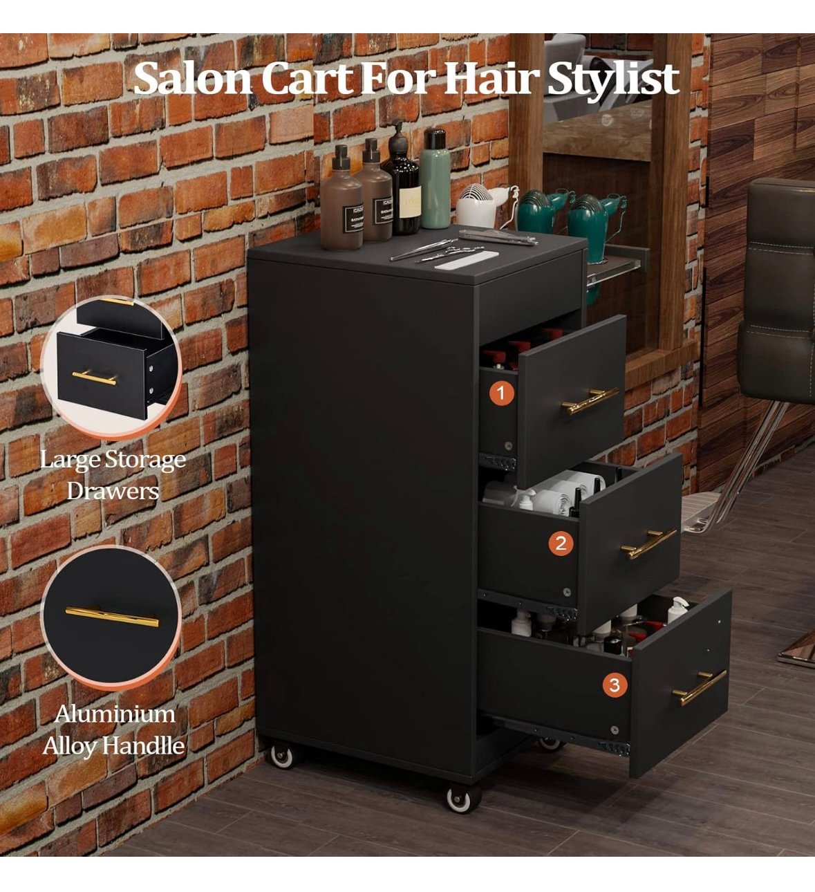 - Mobile Salon Station ❤ Enjoy large storage and multi-purpose rolling cart mobility around your salon, spa, or beauty business with the durable salon trolley cart. Four smooth-glide wheels allow for effortless mobility around your salon, spa, or barbershop. Two wheels are lockable to avoid the cabinet sliding around when you do hair treatment.