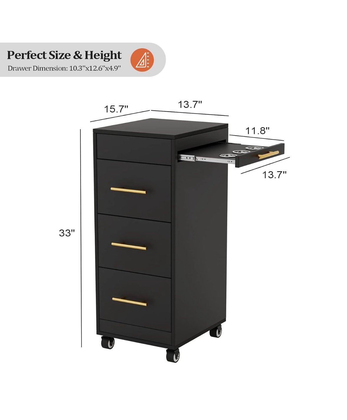 - Stylish ❤ Feature with matte black out-looking and gold handle decorated, this salon trolley matches perfectly with the rest of the salon furniture. Measures 33 inch in height, convenient for beautician or barber to reach tools.