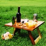 【Natural & Sturdy】This item is made of Acacia Wood, known for its durability, suitable for any surface. This folding wine table is coated with a food-grade protective oil. It is also a perfect charcuterie board and low table for breakfast on bed. On summer it’s used outdoor, while indoor on spring and winter.