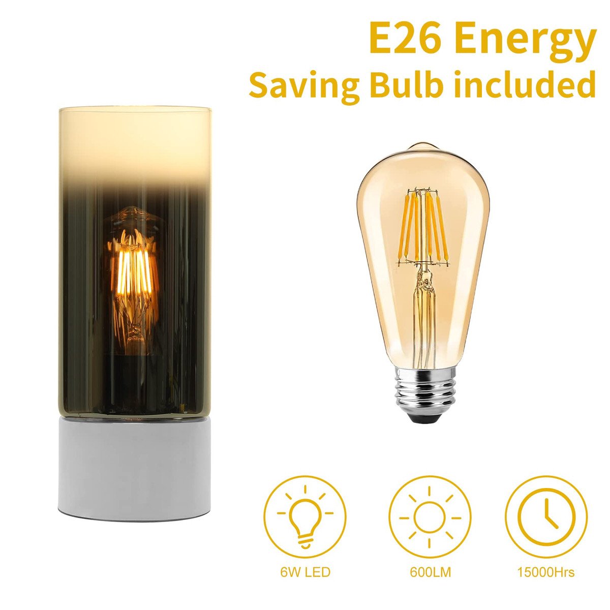 ?6W LED Bulb Included?Our 6W ST58 bulb has a long lifespan of up to 15,000 hours, 10 times longer than the incandescent bulbs, greatly reducing the re-lamping frequency while providing the same lighting quality. The 6W LED bulb is 60W equivalent of incandescent bulb, up to 90% energy saving, saving your electricty bill.