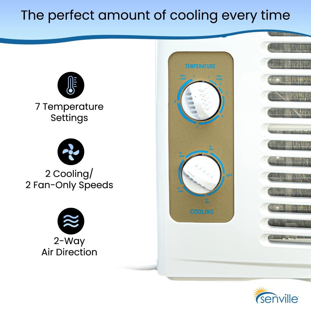 PERFECT FOR SMALLER ROOMS – Senville’s Affordable Window AC unit is the perfect companion to any room. It can cool 150 sq. ft. with 7 temperature settings, 2 cooling/2 fan-only speeds, and 2-way air direction to give you the perfect amount of cooling every time.