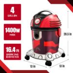 1400W Motor & 3-IN-1 Function: 1400W motor for powerful suction of garbage and debris or dirty water into the 4 Gallon tank. 3-IN-1 wet and dry vacuum cleaner with blowing function allows for quick cleaning of leaves, grass clippings, snow in your garage and outdoors
