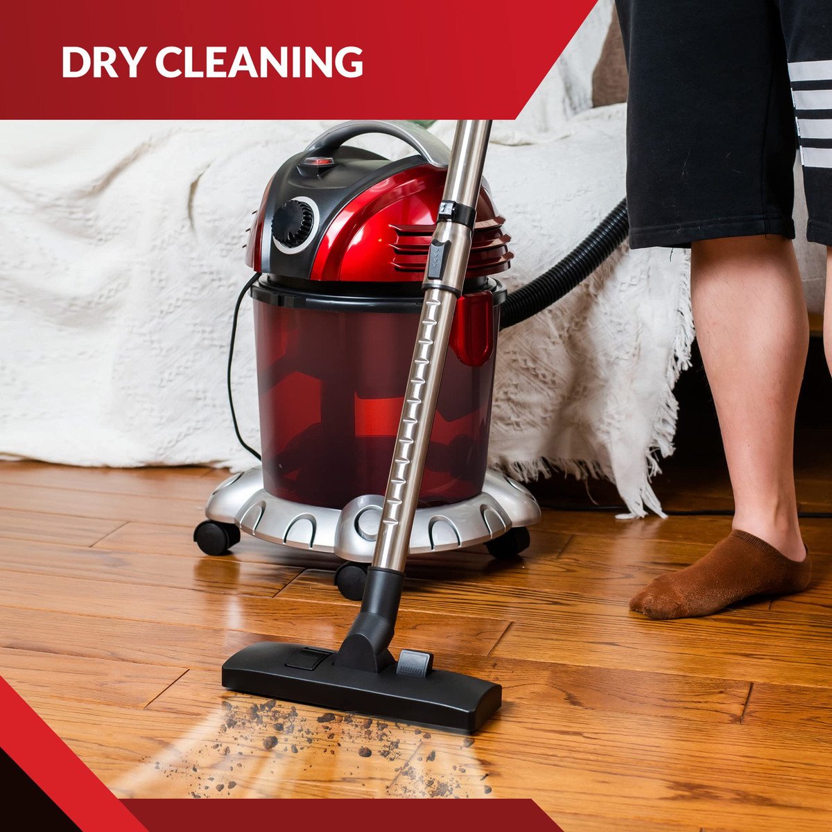24.3Ft Cleaning Radius: 16Ft power cord, 6Ft hose, 2.3Ft telescopic metal tube, total 24.3Ft cleaning path and 360? swivel casters, making it easy to clean your home, car, garage, office