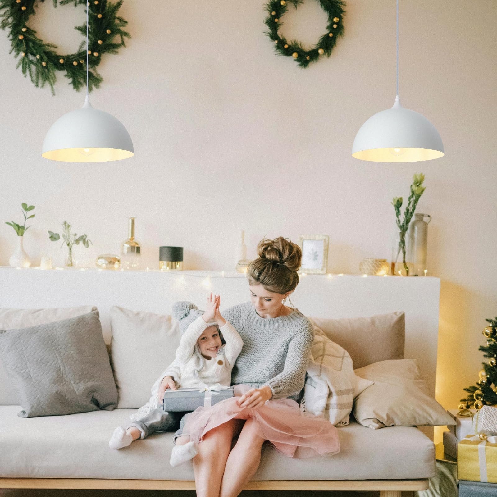 SESIMENT White Farmhouse Pendant Light 11.8” 2 Packs