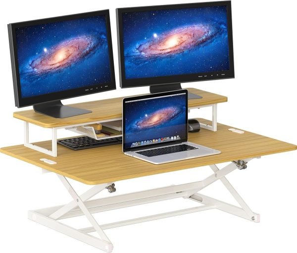 SHW Desk Converter 36″ Height Adjustable w/ Monitor Riser
