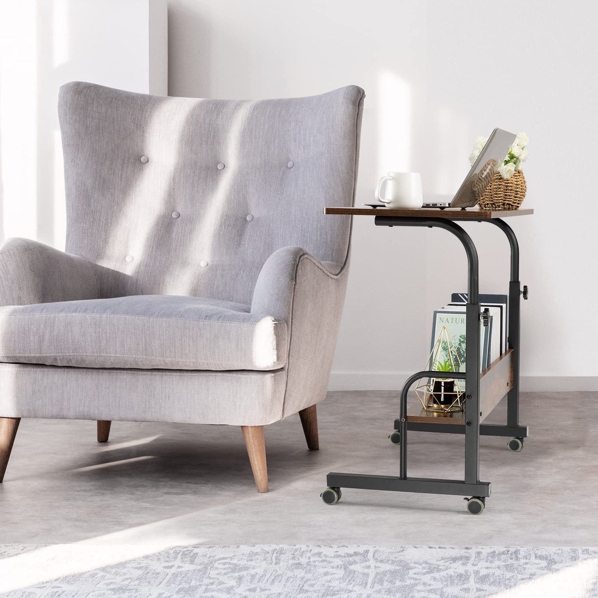 With a Additional Shelf – The laptop table with a table area and a additional storage shelf will provide you ample storage space, so you can put some books, plants or something you want on the desk. In a word, everything can be in reach when you get the adjustable tv tray table.