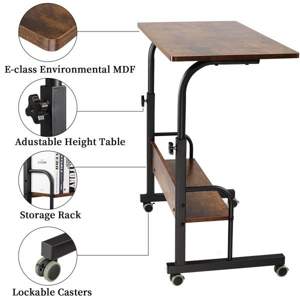 Adjustable Height & Easy Move – This kind of mobile laptop desk can be adjusted to your ideal position from 27.6″ to 35″. And the rolling desk which have 4 smooth wheels can also make desk move wherever you want. The adjustable computer table protect you from Headache, neck pain.