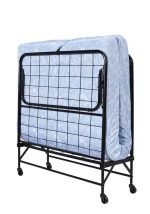 Rollaway bed with 100% thermobonded high-density polyester filled 5″ mattress with floral cover design. 100% polyester cover. Cot mattress firmness level: medium support.