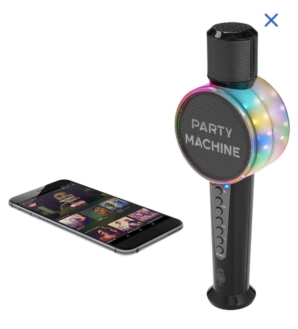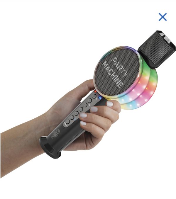 Make your rockstar or diva dreams a reality with the Singing Machine microphone. This karaoke mic comes with its own built-in Bluetooth speaker, along with fun lighting effects that sync with the sounds, and voice changing effects that let you be who you want to be as you sing. Clear audio, and one-touch lead vocal remover provide a true karaoke experience.