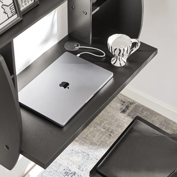 Great design wall mounted desk with storage shelves and compartments provides working space and extra plenty of storage space