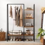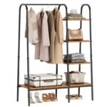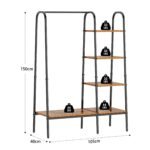 Dimension of the Garment Rack: L39.4″ * W14.6″ * H57.9″. The freestanding cloth rack with storage shelves is perfect for your bedroom,entryway to hang your coats, put your shoes and other supplies.