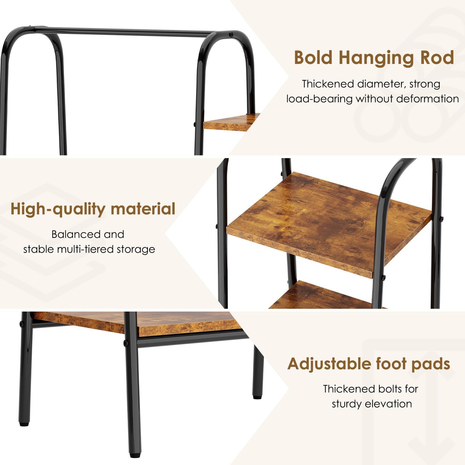 Simple & Practical Garment Rack: The garment rack is simple can match most home decor well. It is suitable for a limited room but offer multi functions. You can using it to hang your coats,put your shoes on, put your book or other things on.