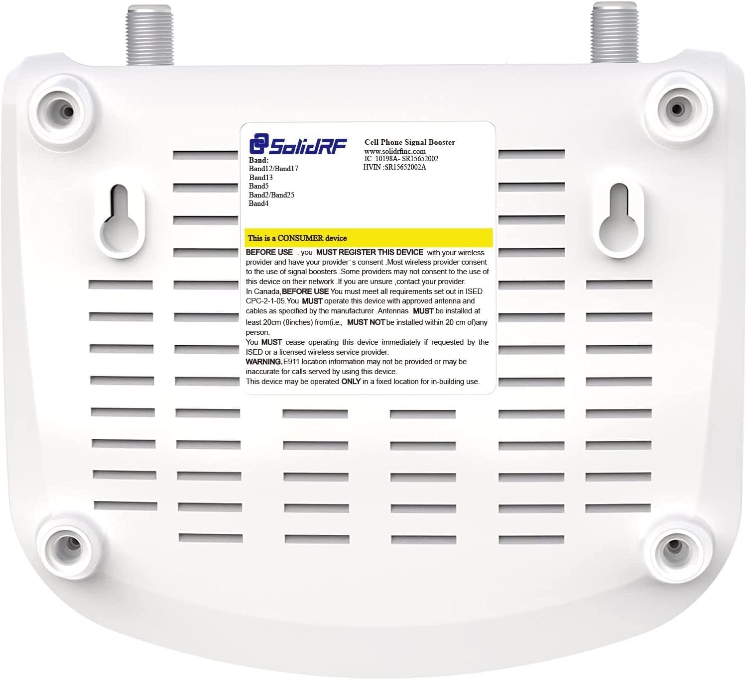 ISED Approved: IC Certification: The booster is compliance with the requirements of the standards applied. IC certification number: 10198A-SR15652002. Hardware Version Identification Number(HVIN): SR15652002A. Automatically Adjusts System Gain And Power Level To Get The Optimum Result. No Manual Intervention Needed.