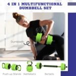 - 4-in-1 Barbell Weights Set: You’ll have barbells, dumbbells, kettlebells and push-up stands, so you can do an abundance of exercises. Great for a full-body workout.