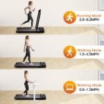【Equipped with Powerful and Quiet 2.5 HP Motor】The powerful and low-noise 2.5 HP motor provides a large carrying capacity of up to 340 lbs. The sturdy treadmill lets you run up to 6.2 mph on the frame and walk up to 3.8 mph while using the remote under your desk.