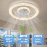 【Elegant Design & Super Silent Ceiling Fans with Lights】: Our modern low profile ceiling fan features two diamond luminous circles, consisting of an inner ring and outer ring, adding a stylish touch to any room.Built-in energy-efficient LED lights and a pure copper motor ensure that the noise level is kept below 30dB.Dimensions: 19.68 x 19.68 x 4.1 inches, suitable for rooms from 100-320 ft².