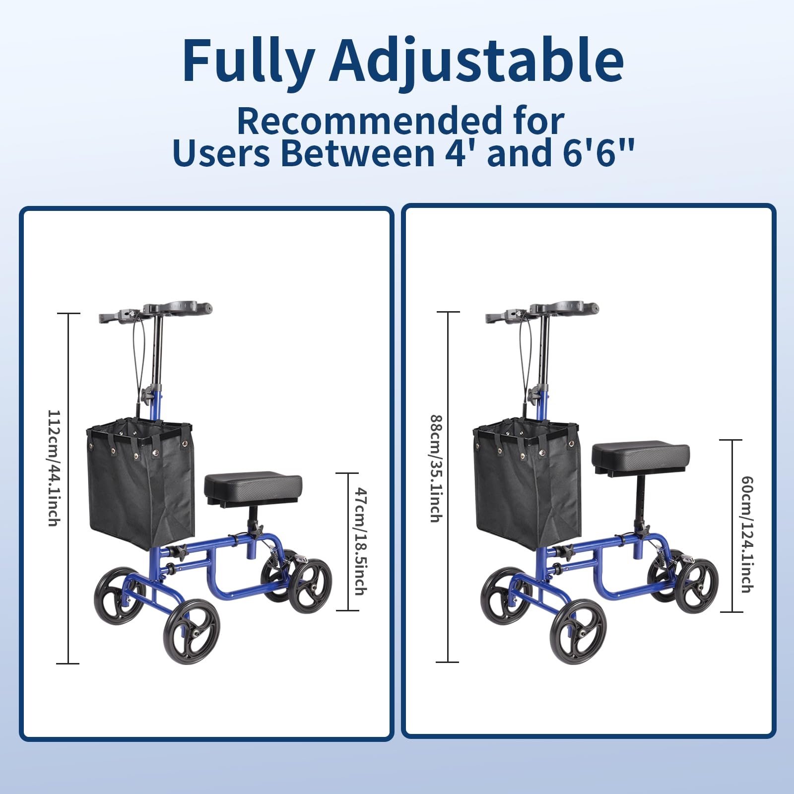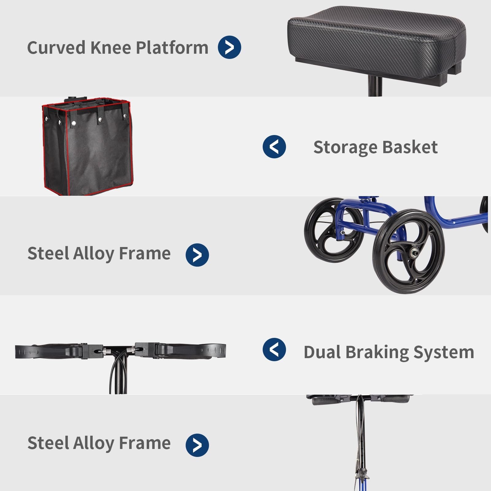 - COMFORTABLE SUPPORT: Engineered to provide optimal comfort and stability, this knee scooter enhances user independence and quality of life during recovery. Its ergonomic design reduces strain on the injured leg while promoting mobility, allowing users to navigate daily activities with greater ease and confidence