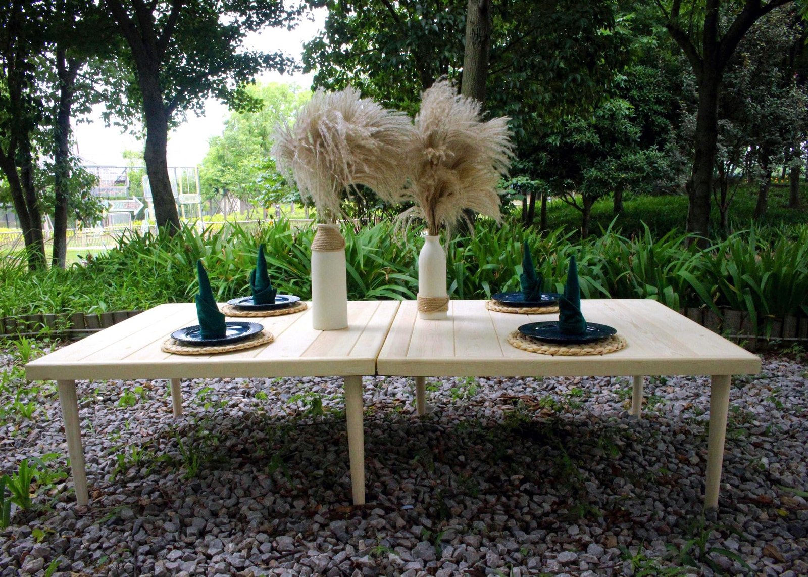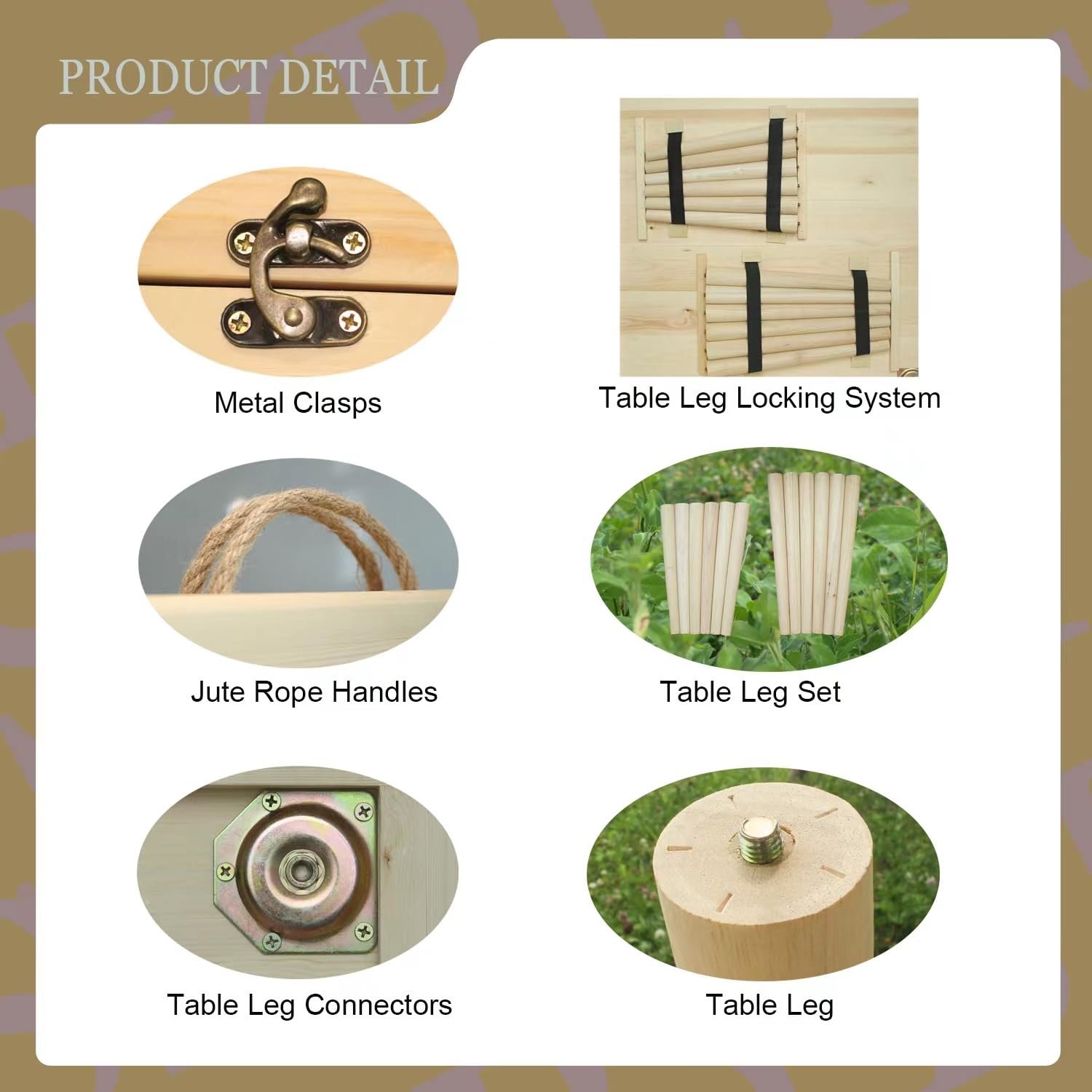 Excellent Craftsmanship: 🌷 Purely hand-made by craftsmen, the wooden strips of the table are hand-cut, spliced and sanded with smooth edges and no burrs. We have improved the connection process of the table legs to ensure that it provides a more convenient way to install and remove the table when using, and every detail reflects the exquisite craftsmanship.