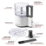 The processor has a generous 4-cup capacity, suitable for both small and large culinary tasks.