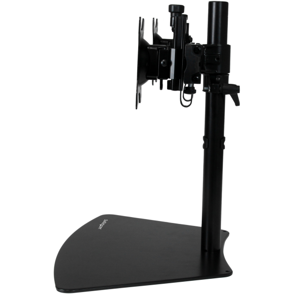 Increase your productivity and free up desk space with this dual-monitor stand. The free-standing mount lets you install two displays up to 24″ , side by side, on a single base that you can place in virtually any workspace. The black finish complements your office decor.
