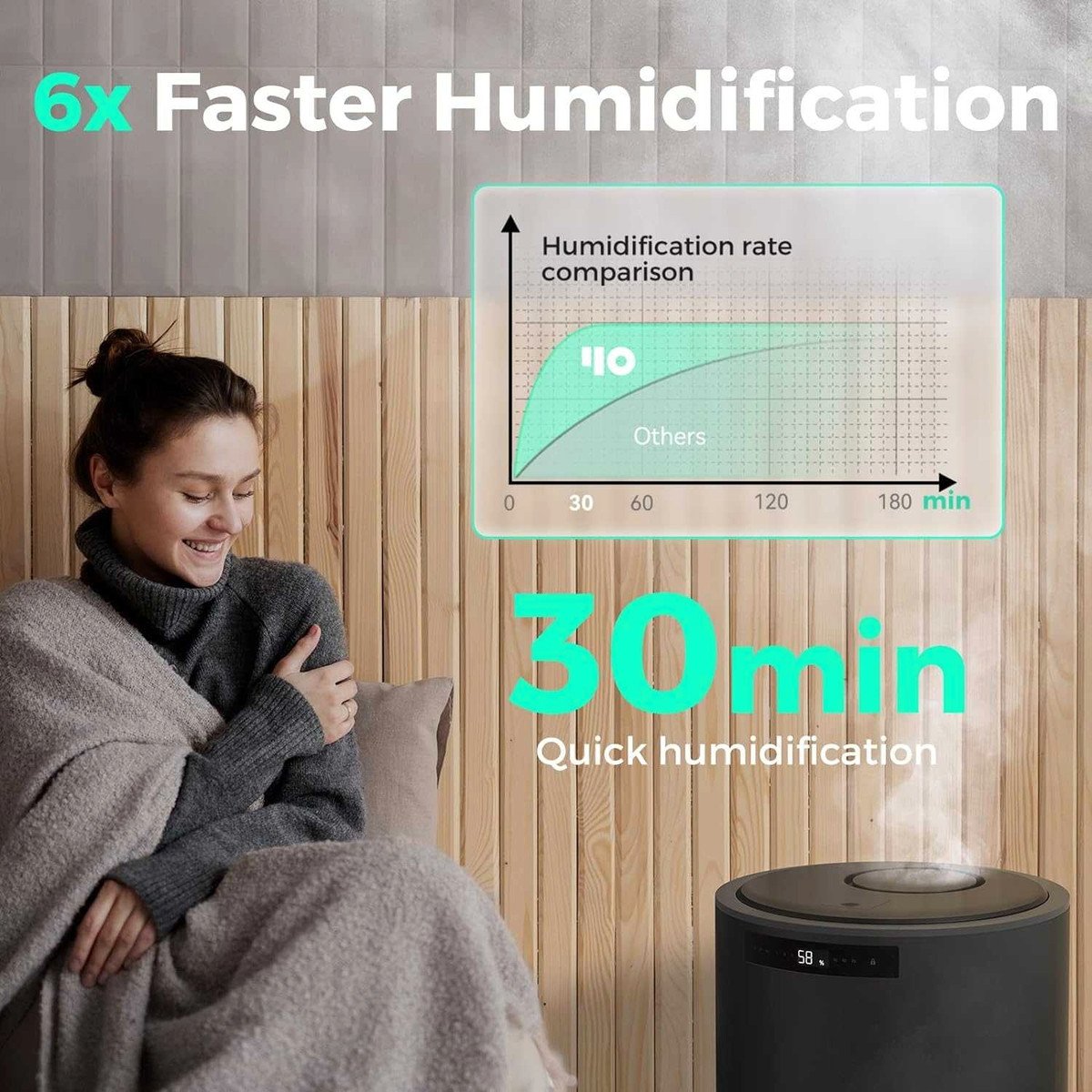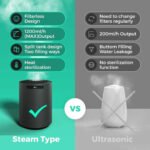 99.9% Germ-free – Steam humidifier offers more healthy and clean mist by heating evaporation technology – after high-temperature sterilization at 100 ?, it is cooled to 50 ? through high and low pressure air ducts to output sterile distillation warm mist, making it suitable for use by people with rhinitis and respiratory tract sensitivity.