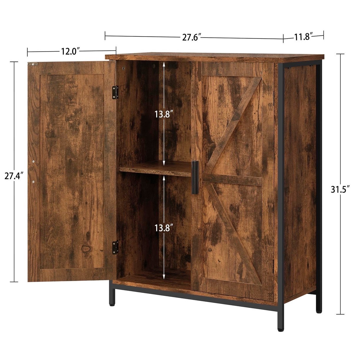 Farmhouse Design: The retro-colored barn door is subtly combined with a black metal frame, adding a touch of farmhouse flair to your industrial style. This storage cabinet will blend in seamlessly with the rest of your decor