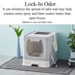 [LOCK-IN ODOR]-Covered litter boxes minimize the spread of litter box odor through your home and they may help contain urine spray and litter scatter better than open boxes. It doesn?t have a odor because doors and flaps tend to lock-in odor.