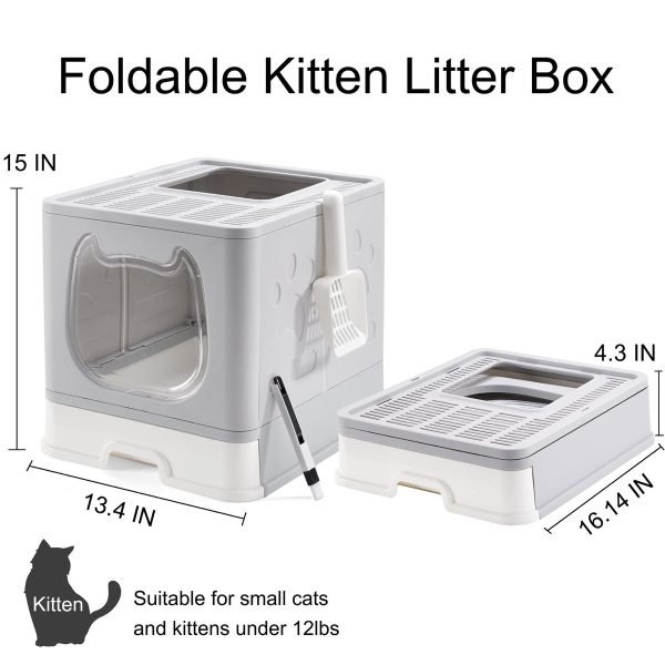 [PORTABLE DESIGN]-The kitty litter box adds a foldable design for convenient storage and portable travel. You can take and use it whenever and wherever if only your cats need it. A nice choice for travelling. We recommend this cat litter box for small cats and kittens under 12 lbs.