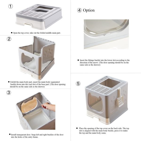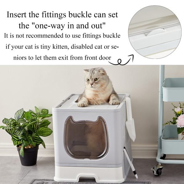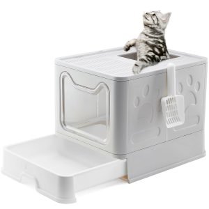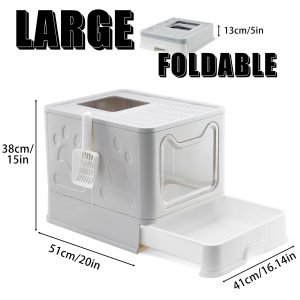 Suhaco Foldable Cat Litter Box with Lid Covered Top Entry