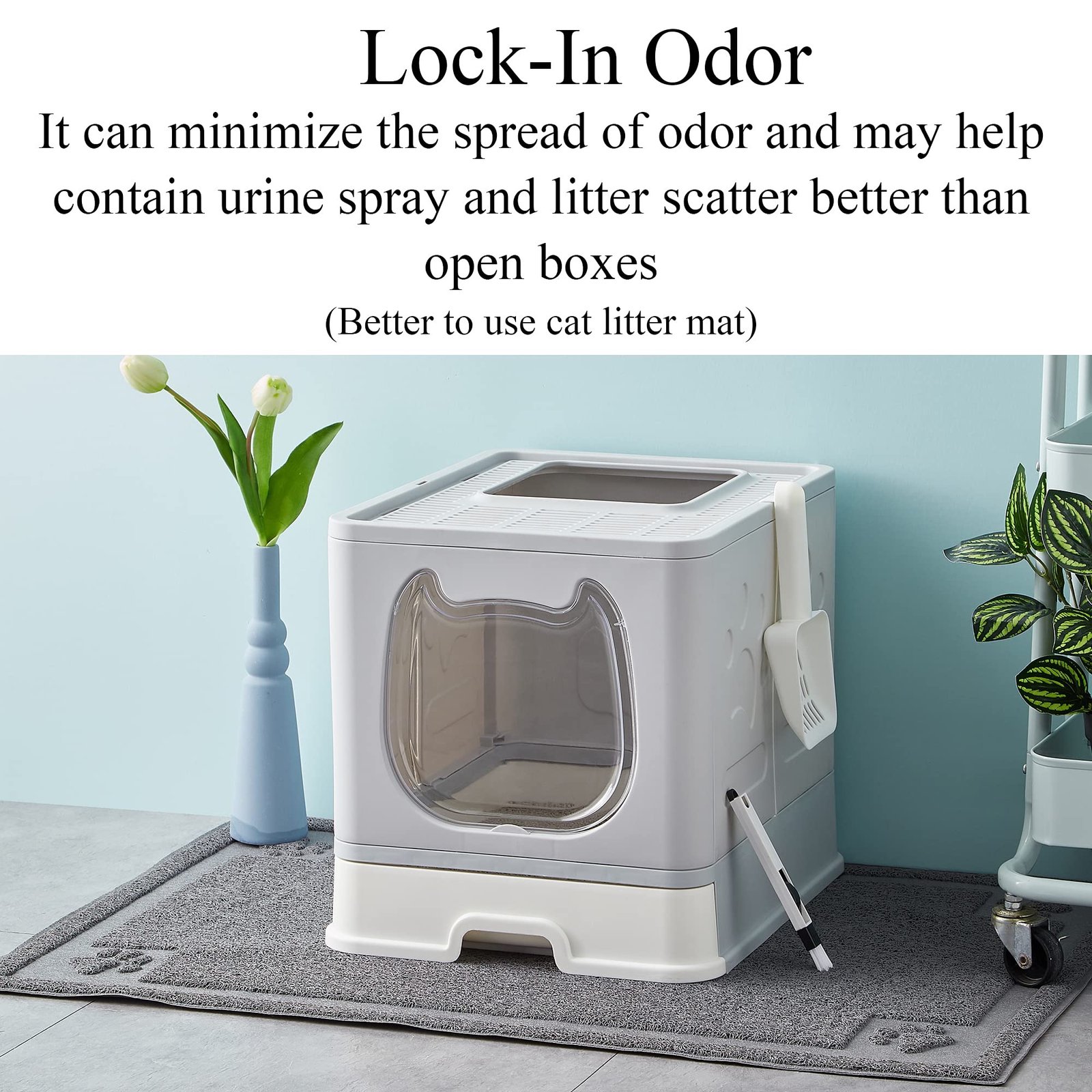 [LOCK-IN ODOR]-Covered litter boxes minimize the spread of litter box odor through your home and they may help contain urine spray and litter scatter better than open boxes. It doesn’t have a odor because doors and flaps tend to lock-in odor.