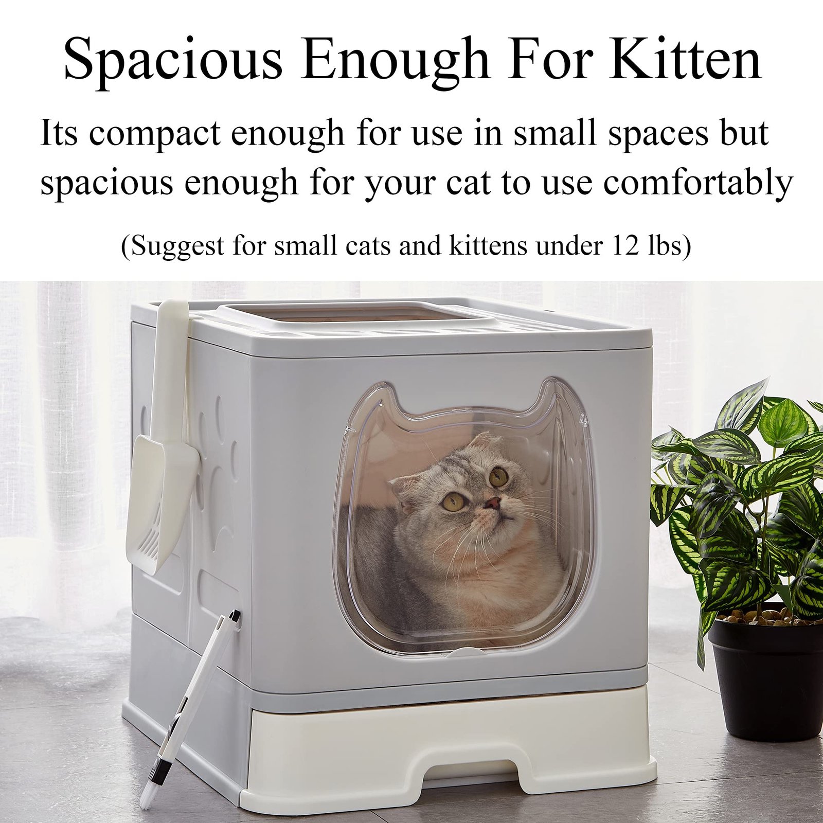 [PORTABLE DESIGN]-The kitty litter box adds a foldable design for convenient storage and portable travel. You can take and use it whenever and wherever if only your cats need it. A nice choice for travelling. We recommend this cat litter box for small cats and kittens under 12 lbs.
