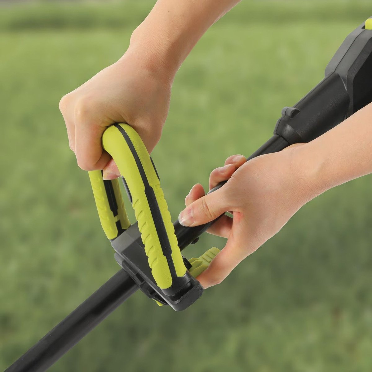 DescriptionKICK SOME GRASS! Trim up the lawn where the mower just won’t go with the 24V Cordless String Trimmer from Sun Joe?. Powered by the exclusive 24V iON+ System, the included 4.0 Ah lithium-ion Battery; and the included iON+ charger powers up the battery in under 2 hours! Cut the grass in those hard-to-reach places a mower just can’t go with the 14″ max cutting width. The included bump-feed spool easily slices through thick thatch and woody grass, for a perfectly groomed lawn every time. The 450 Watt brushless motor offers two speed settings: LOW 4500 RPM, for regular trimming | HIGH 6000 RPM for thick, woody stems and weeds. The ergonomic auxiliary handle can be adjusted to the perfect height, to maximize user comfort. And the durable aluminum shaft folds down for easy, hassle-free storage. So, get your yard in shape: Go With Joe?. The 24V Cordless Trimmer from Sun Joe. GET EQUIPPED?.