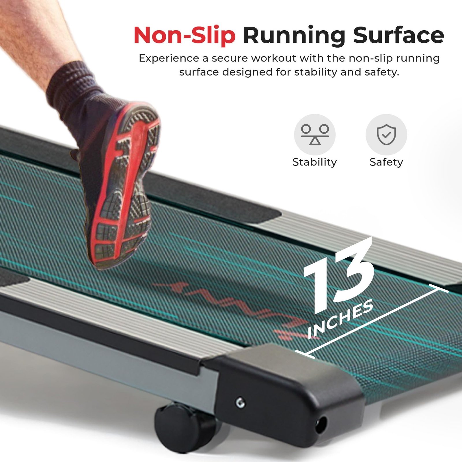 【SAFE NON-SLIP RUNNING SURFACE】Experience peace of mind during your workouts on the treadmill’s smooth, non-slip belt, designed for maximum stability and safety with every step.