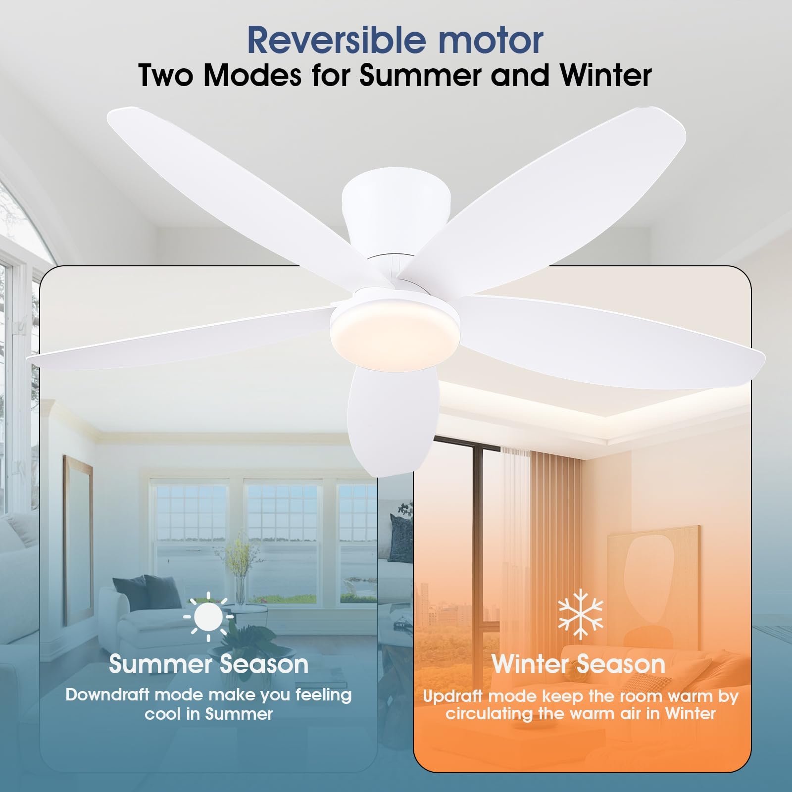 💡【Reversible DC Motor】:High-quality motors ensure quiet operation and create a peaceful environment. Reversible motors help you cool in summer and promote air circulation in winter.