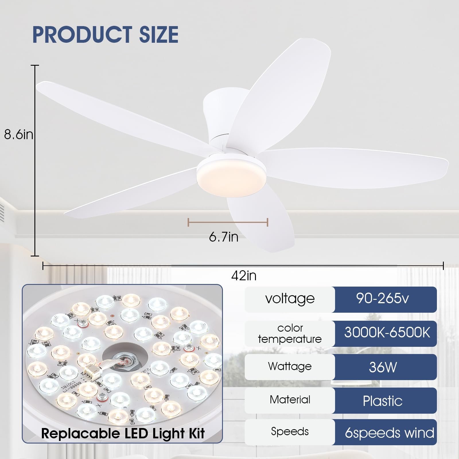 💡【Low profile Flush Mount Ceiling Fan】:The ceiling fans come with detailed instructions and installation videos to help you install them.Our ceiling fans are suitable for Spaces such as farmhouses, living rooms, bedrooms, offices, study rooms and kitchens. Also suitable for covered outdoor areas such as patios, porches, gazebos(note: not waterproof)