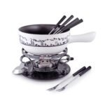 - Complete 9-Piece Fondue Set – Includes a ceramic pot, six fondue forks, a sturdy wrought iron rechaud, and an 8-hole fondue burner for an authentic fondue experience. Perfect for family gatherings.